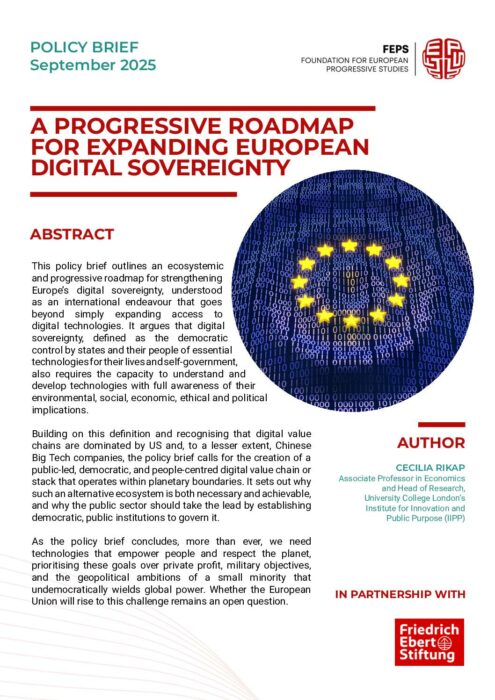 In this environment, progressive digital policy grounded in empirical evidence and critical analysis is essential to defend democratic values, promote equity, and ensure that digital innovation serves the public good rather than entrenched power. Without such efforts, the digital realm risks becoming a tool of division, extraction, surveillance, and control. FEPS supports these efforts by funding and creating a platform for progressive scholarship and projects around digitalisation.